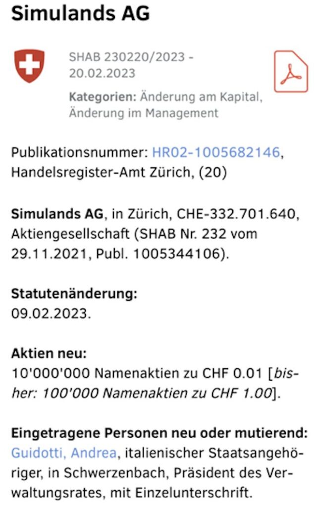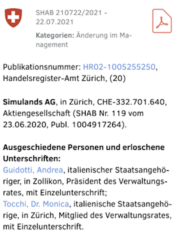 Wie genau diese Technologie in private Strukturen überführt wurde, ist bis heute unklar. Ebenso weiss man nicht, ob Maisano weiter mit der Simulands verbunden ist.