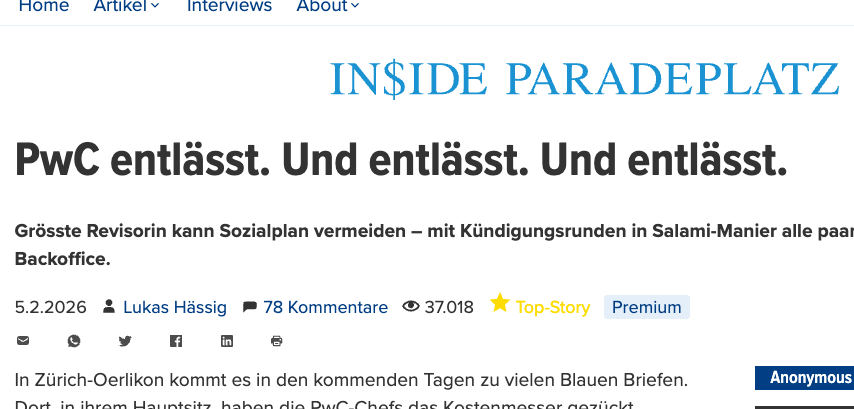 Unter den Entlassenen befänden sich teils bekannte Köpfe, jedenfalls PwC-intern.