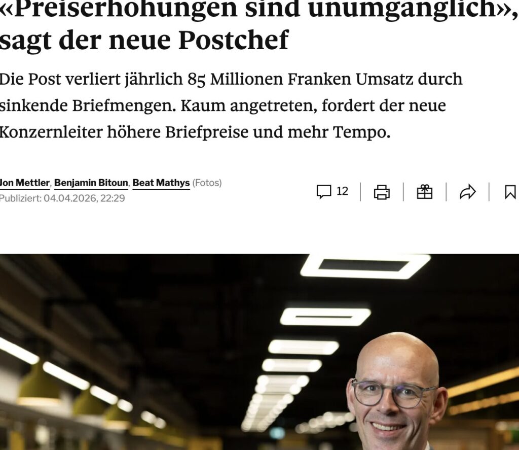 Die Post verkommt zu einem Temu-Laden, nur die Preise steigen bis auf Matterhorn-Höhe. der Service nimmt laufend ab, nicht nur bei der Zustellung, auch am Postschalter. Manchmal sehr unhöfliche Mitarbeiter.