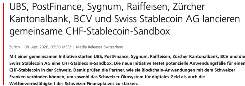 Heute früh ein nächster Knall. Dabei gehts um den ersten Swiss Stablecoin auf breitem Fundament.