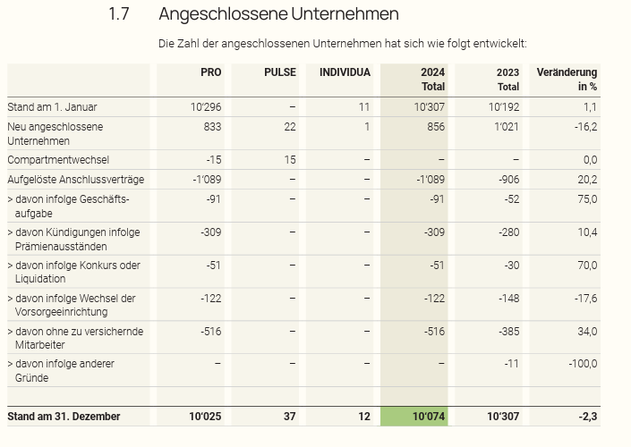 Ende 2023 waren 10’307 Firmen angeschlossen, Ende 2024 waren es noch 10’074, ein Minus um 2,3 Prozent.