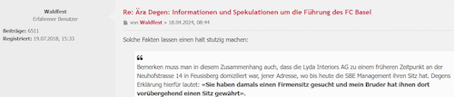 Im FCB-Forum wurde kritisiert, dass die Firma zeitweise an einer Adresse domiziliert gewesen sei, an der auch eine Gesellschaft aus dem Umfeld von FCB-Präsident David Degen eingetragen war.