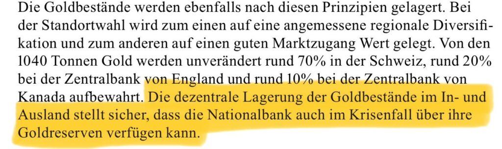 Diskrete Repatriierung von 129 Tonnen aus den USA. Schweizer ohne Plan für Gold in England (20 Prozent) und Kanada (10 Prozent).
