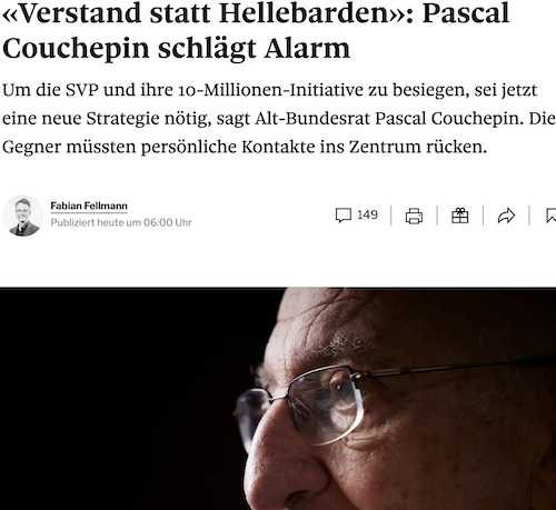 „Die SVP-Initiative ist keine kluge Lösung, aber sie greift ein ernsthaftes Problem auf und bewirtschaftet es politisch“, meinte der „Doyen“ der Sozialdemokraten schon vor 3 Wochen.