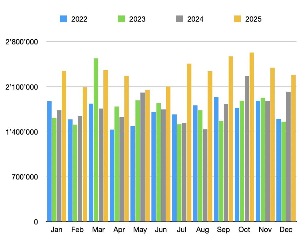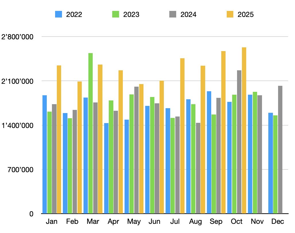 2025 lasen per Ende Oktober 61 Prozent die Artikel auf ihrem Mobilgerät, während 35 Prozent aller IP-Seitenaufrufe auf dem Desktop stattfanden und die restlichen 4 Prozent von den Tablets stammen.